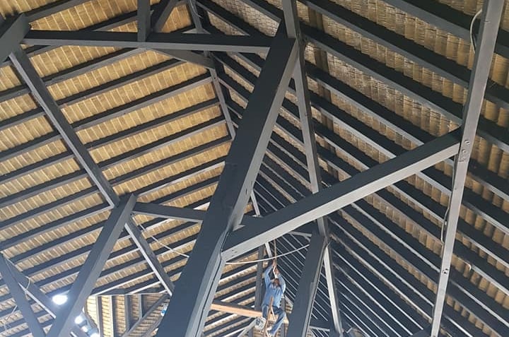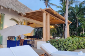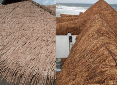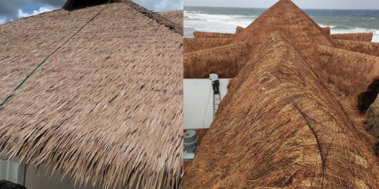 Utilizamos zacate natural, palma sintética, madera y fibra de vidrio.